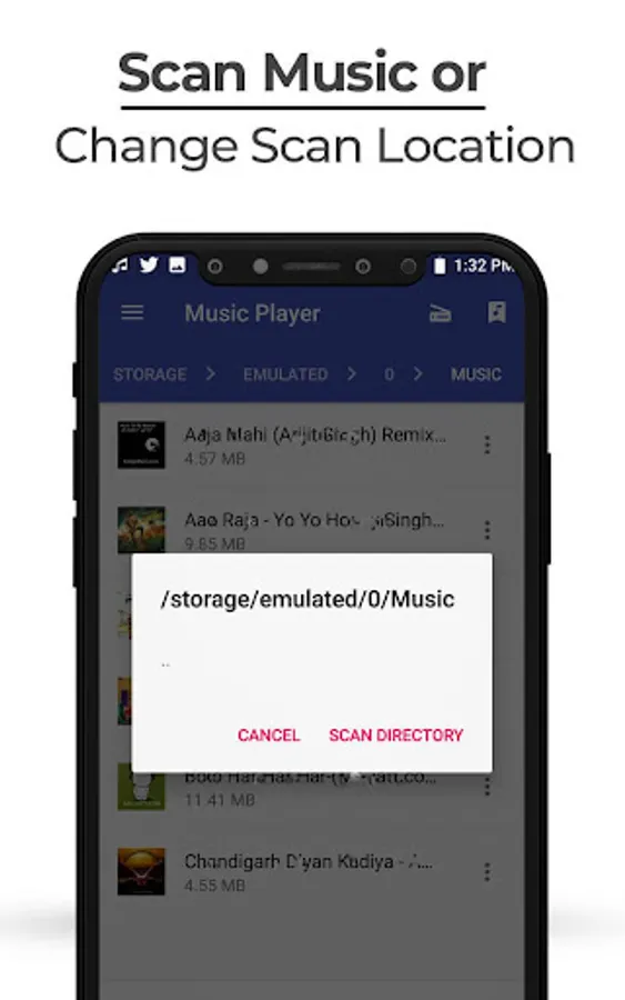π΅ Scan all audio files automatically. Easily Scan files by changing scan locations.