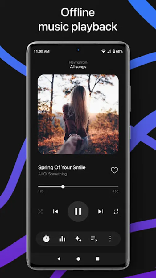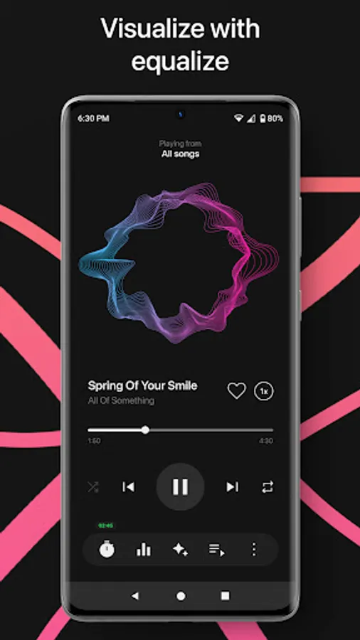 Music player for android app supports any popular music formats like MP3, MP2, AAC, ALAC, M4A, WMA, MAV, AIFF, AC3, APE, MKV, OGG, M4B, RA, RAM, etc. You can enjoy your favorite songs by albums, artists, genres, playlists, folders, etc. Fast music player also allows you to edit a song and turn it into a ringtone. This app is a muzio player with lyrics, and can quickly find and match lyric files. The most important part of this powerful equalizer is that it is an ad-free music player app.