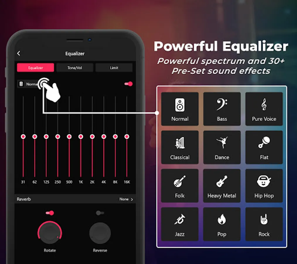 - Supply powerful equalizer, bass booster & 3D virtualizer with multiple presets including: classical, dance, flat, folk, heavy metal, hip hop, jazz, pop and rock. You can also adjust the equalizer to your taste and save it as your own preset
