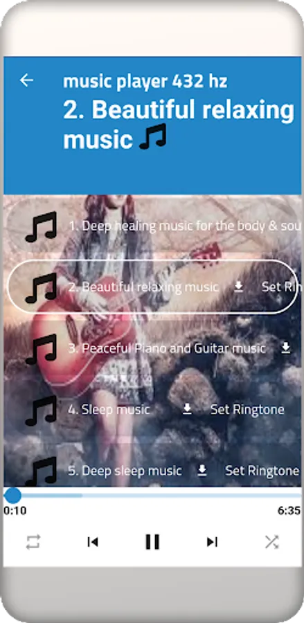 Music Player 432 hz frequency brings you better experience. If you want to relax or sleep peacefully this sounds application is for you