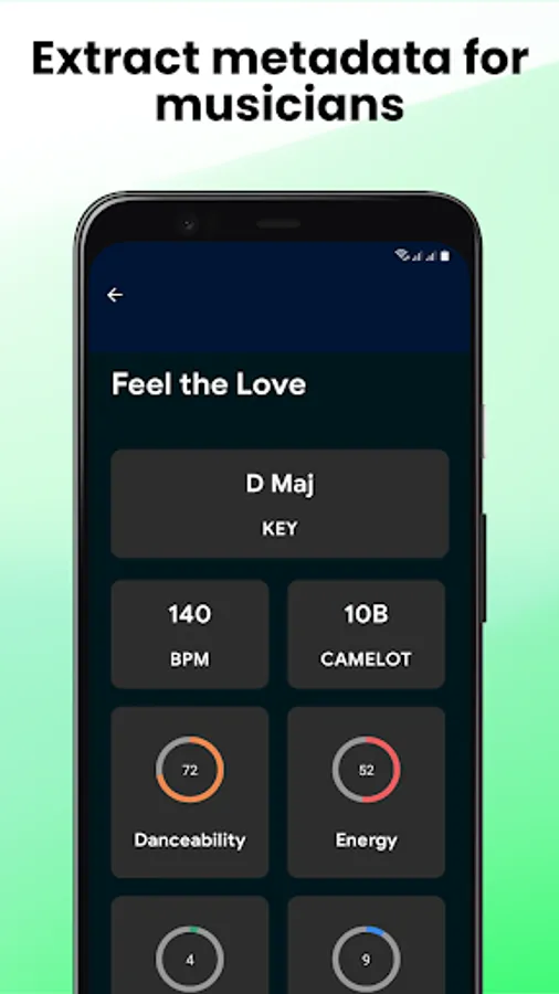 For musicians and producers, Music KEY & BPM Finder goes further by providing key details about the song. Discover the key and beats per minute (BPM) to fine-tune your musical creations.