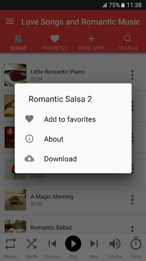 Love Songs and Romantic Music is a free music app with a collection of slow love songs and romantic instrumental music. To help you relax and enjoy your romantic moment, quiet piano music and ambient sounds will be playing in the background. Enjoy yourselves!
