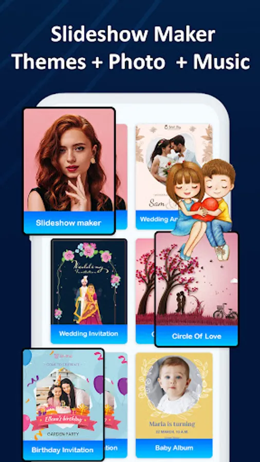 Slideshow Maker App make magic video, master video, bit video and fotoplay video using our creative and innovative templates. Just add music to photo in templates and photo video with music is ready. You can share it different social media platforms.
