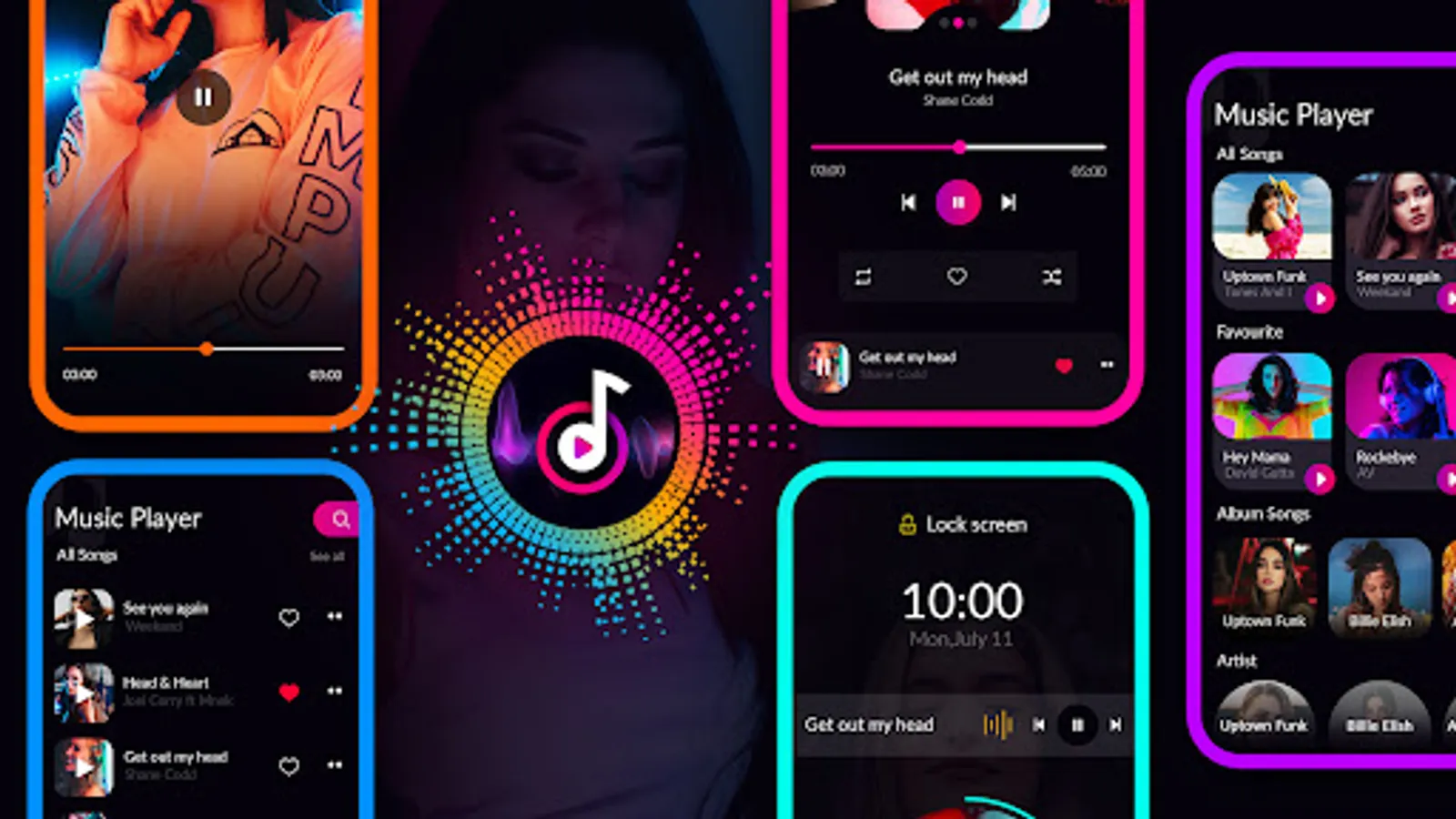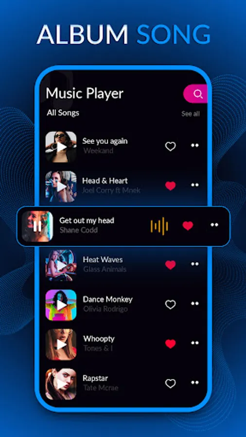- lyric video music player scan all audio files automatically and play the song in the shuffle or loop.
