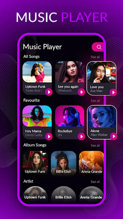 Best music and video player for android is a unique app that you can use online and offline for music and videos. Mp4 video audio player wants to make it easy for you, and that's why we have a great music and video app for you to enjoy. In Video & Mp3 music players you can view audio and video songs by the album, artist, track, and genre directly from the interface. There is an opportunity to play videos from You-Tube Music trending videos.