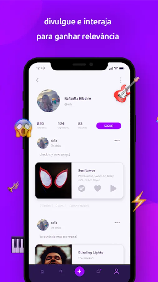 Save the songs you discover directly to your playlist in just one click and gain relevance on the network by interacting with people and promoting your favorite songs.