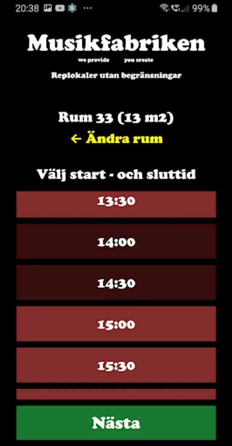The music factory in Gothenburg offers rehearsal rooms that you can rent at selected times. In this app you can quickly and easily book a room.