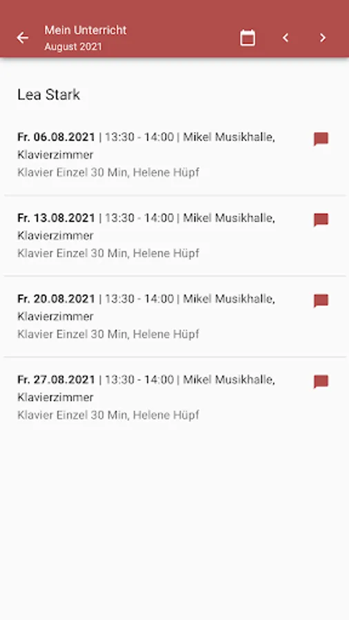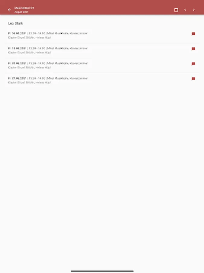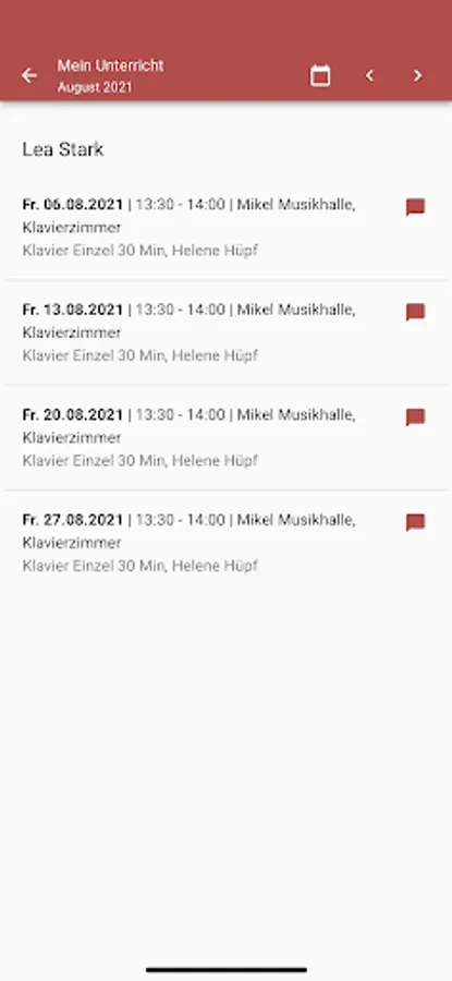 All functions for exchanging messages between teachers, parents, students and the music school do not require any contact information. Messages are transmitted via an app-internal ID. No email addresses or mobile phone numbers are required to chat and exchange messages!