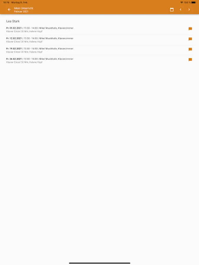 All functions for exchanging messages between teachers, parents, students and the music school do not require any contact information. Messages are transmitted via an ID that is internal to the app. No email addresses or cell phone numbers are required to chat and exchange messages.