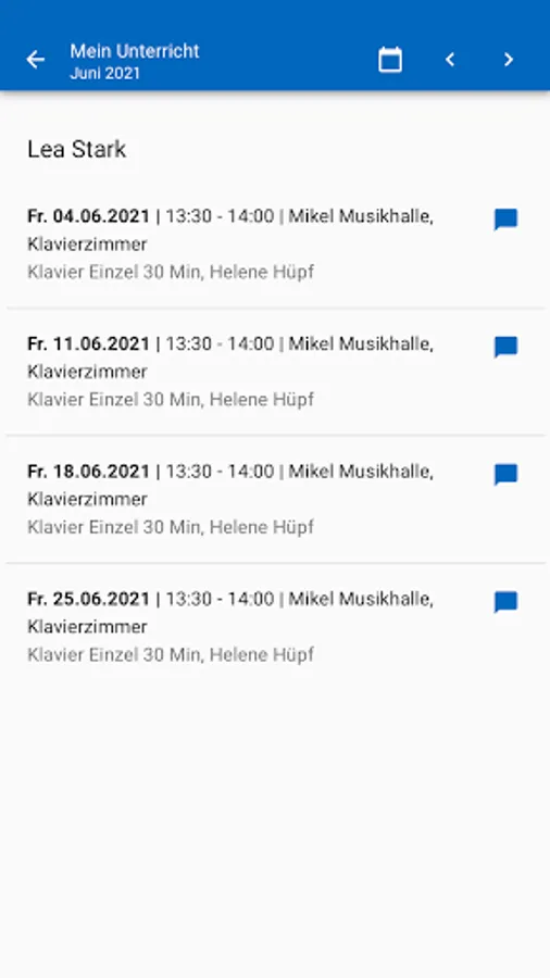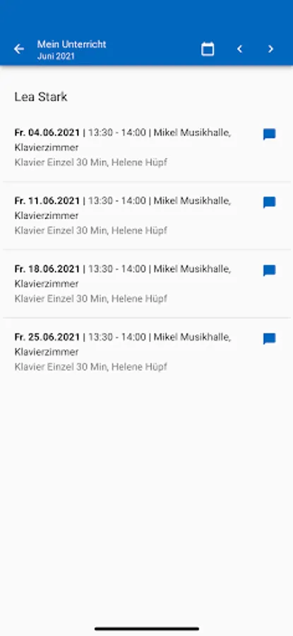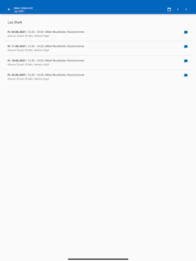 All data is encrypted and stored in a certified data center in Germany in compliance with the GDPR. All functions for the exchange of messages between teachers, parents, students and the music school do not require any contact information, e-mail addresses or mobile phone numbers are not required. Messages are transmitted via an ID that is internal to the app.