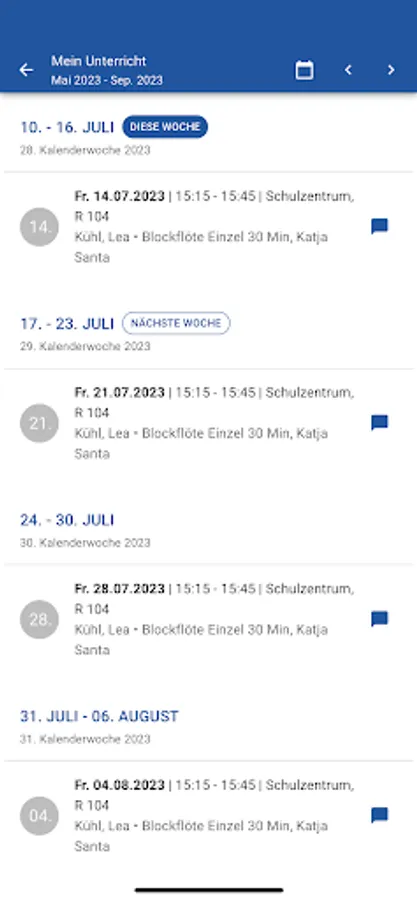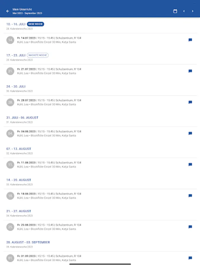 All functions for exchanging messages between teachers, parents, students and the music school do not require any contact information. Messages are transmitted via an app-internal ID. No email addresses or mobile phone numbers are required to chat and exchange messages!