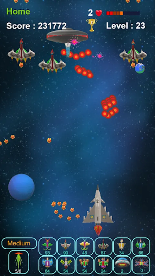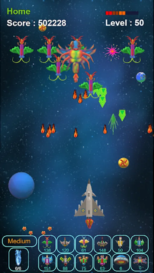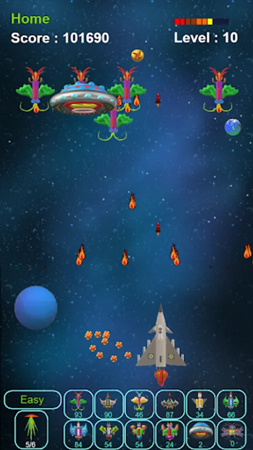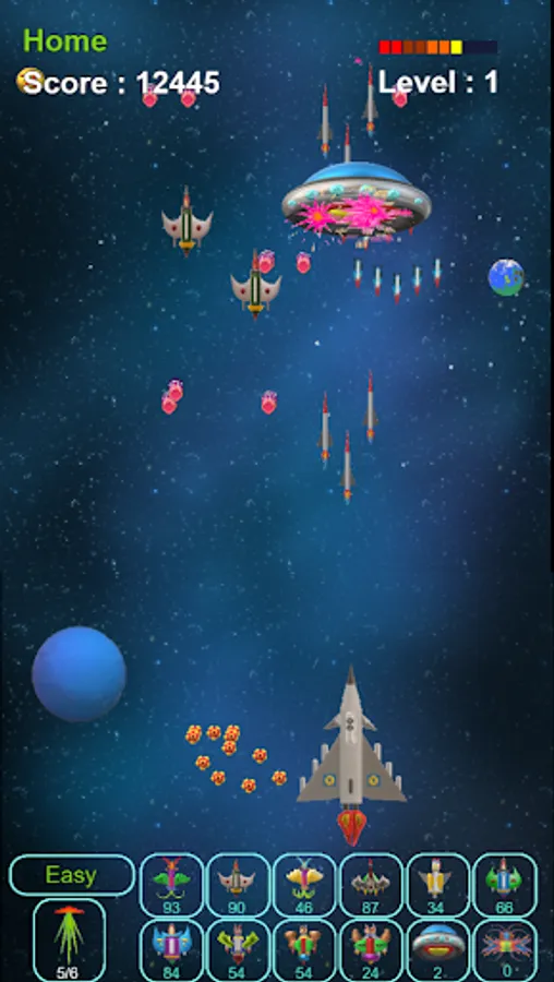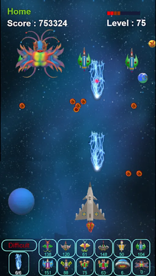 Face off against waves of alien enemies, each more challenging than the last, in varying space environments, ranging from mysterious nebulae to distant planets.