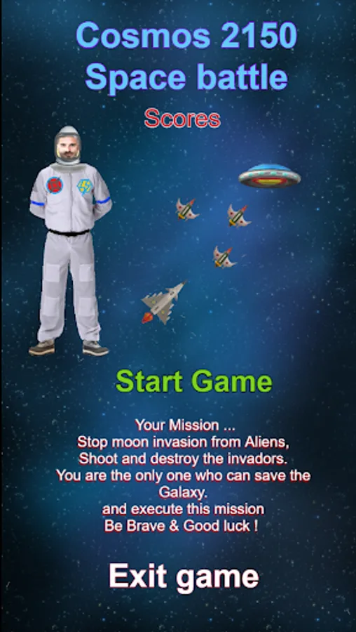 You are in command of the flagship, the best armed, you are the best pilot known to date, the best space shooter, your mission is to shoot, shoot, shoot and destroy as many alien spaceships as possible, your score will be the best way to know your progress and victory, shooting score will offer you new weapons to better shoot space invaders, (aliens)