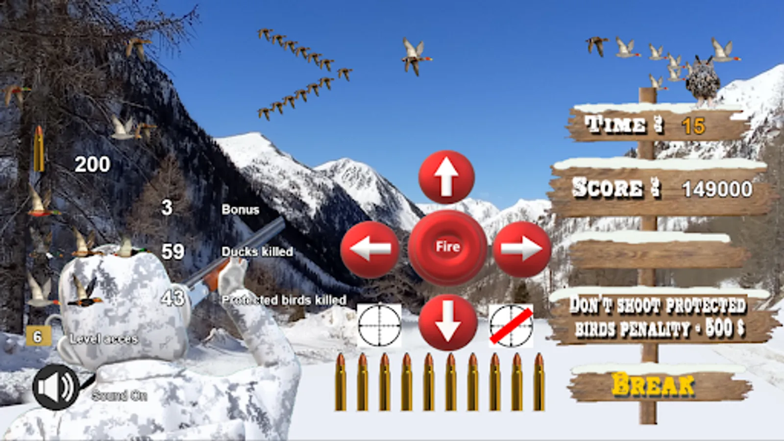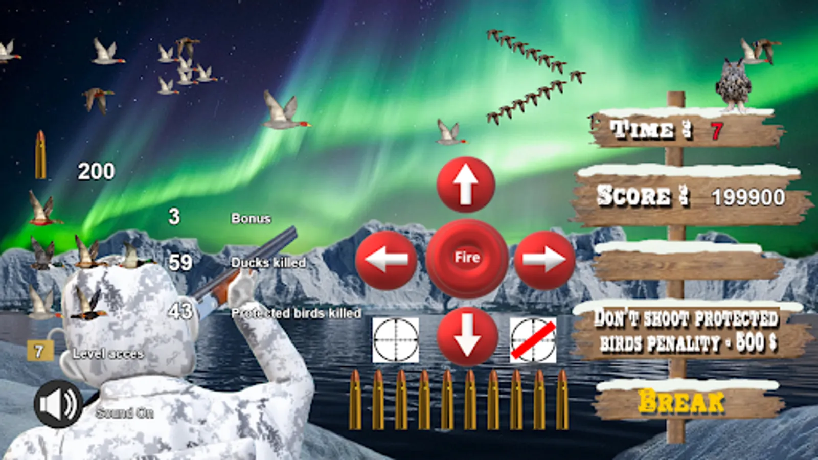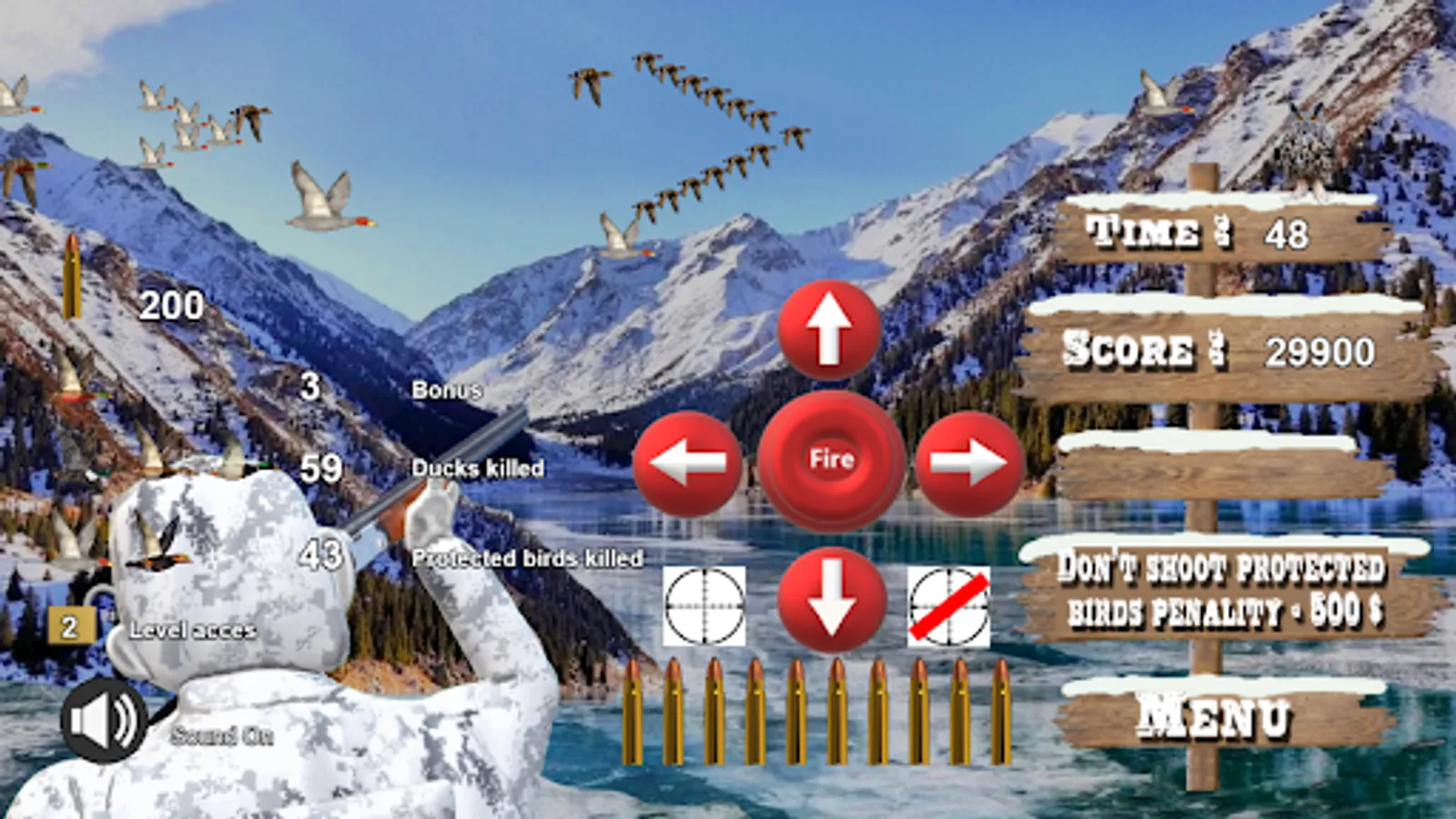 Be careful to don't shoot the protected ducks (swans), otherwise you will lose 500 points each time.