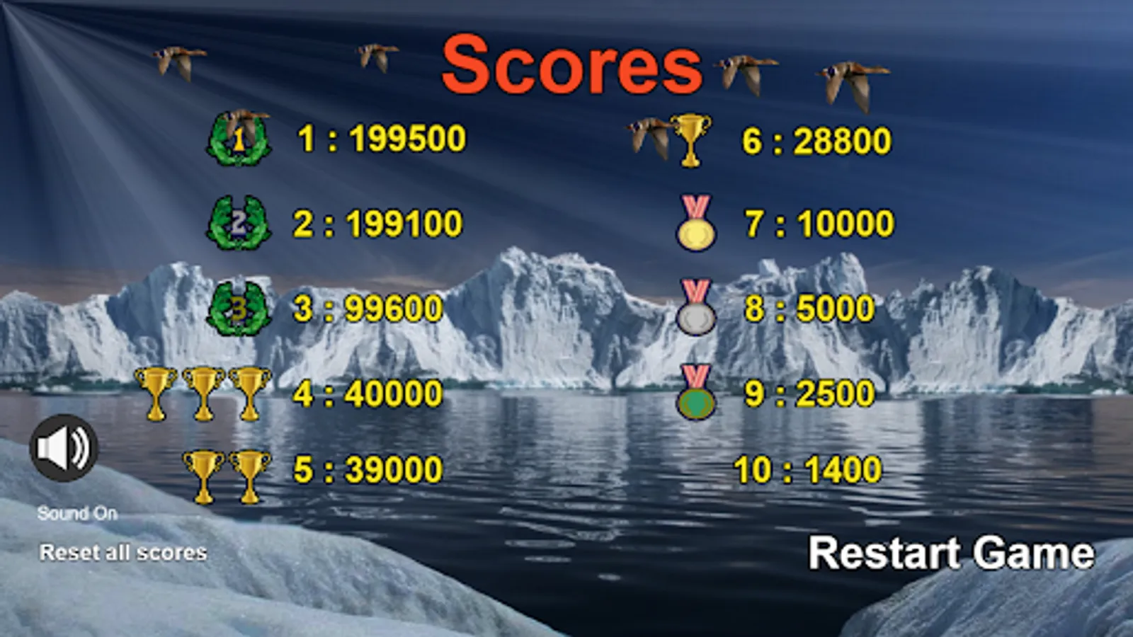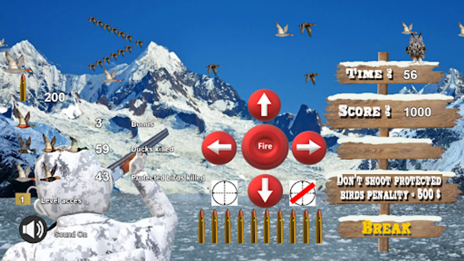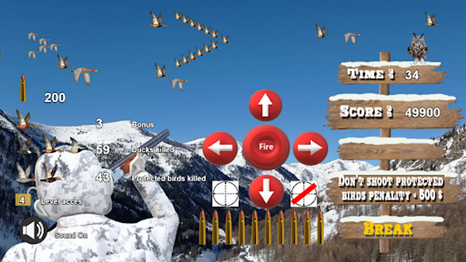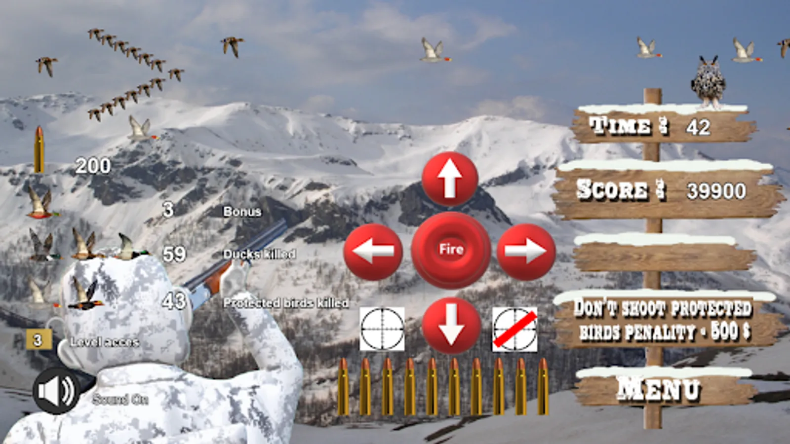 Be careful to don't shoot the protected ducks (swans), otherwise you will lose 500 points each time.
