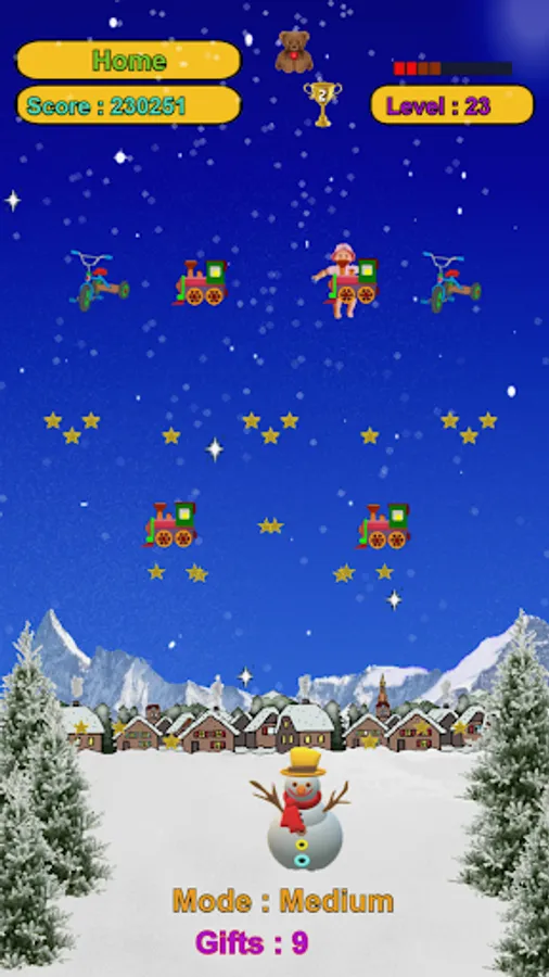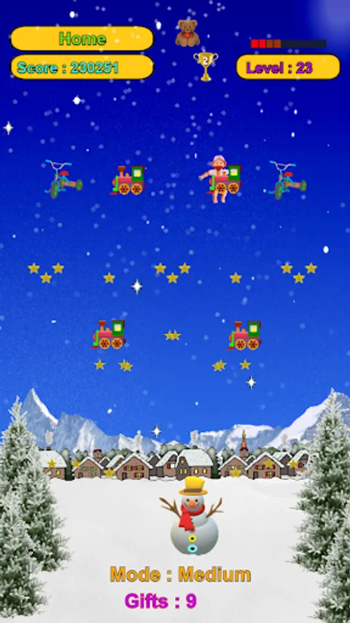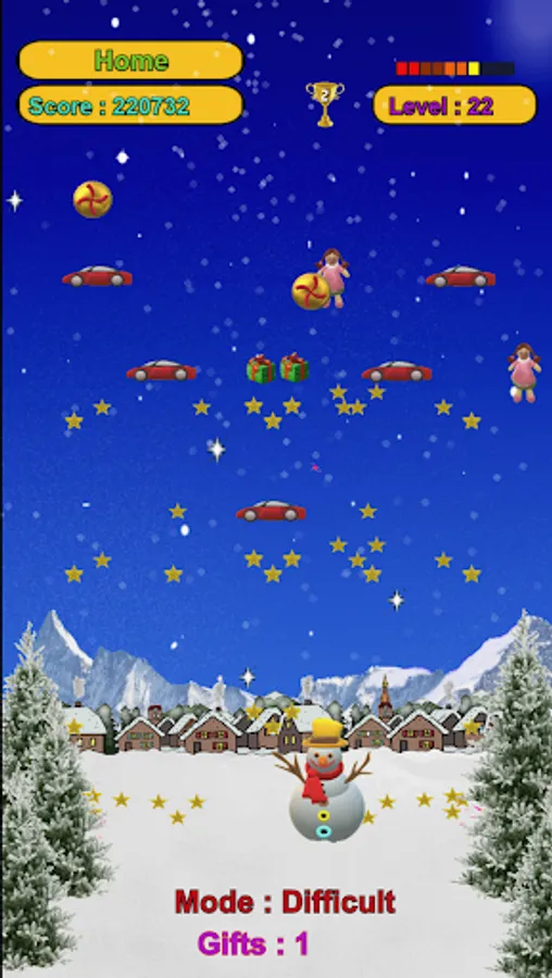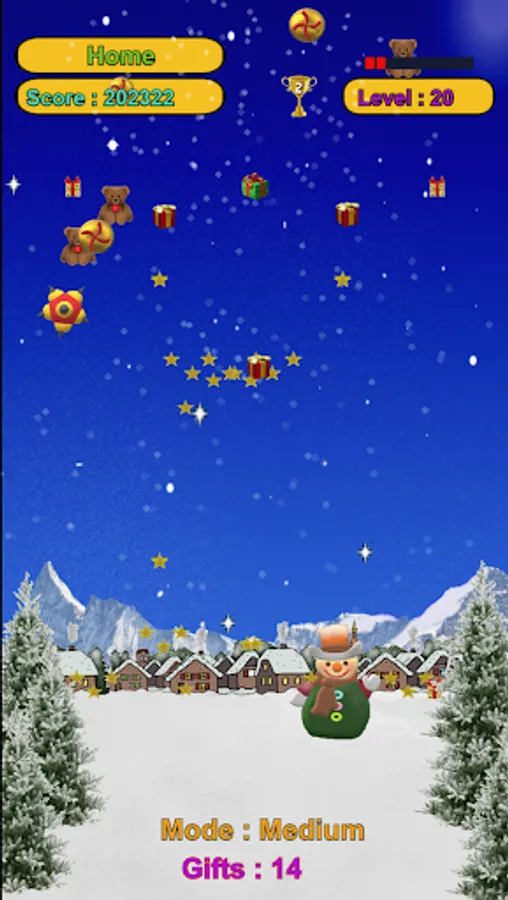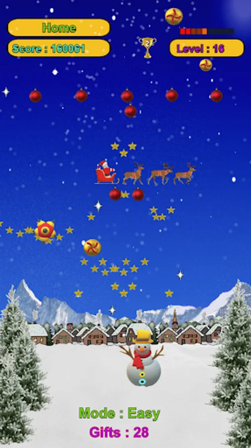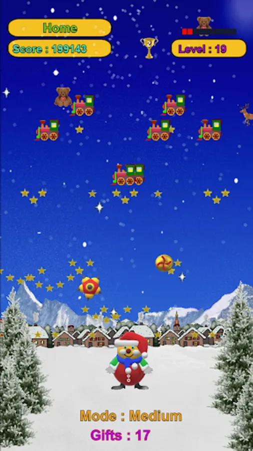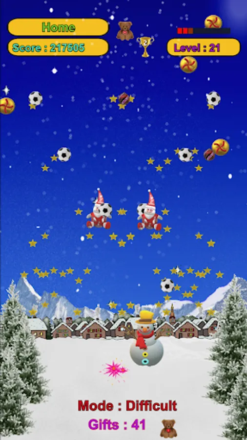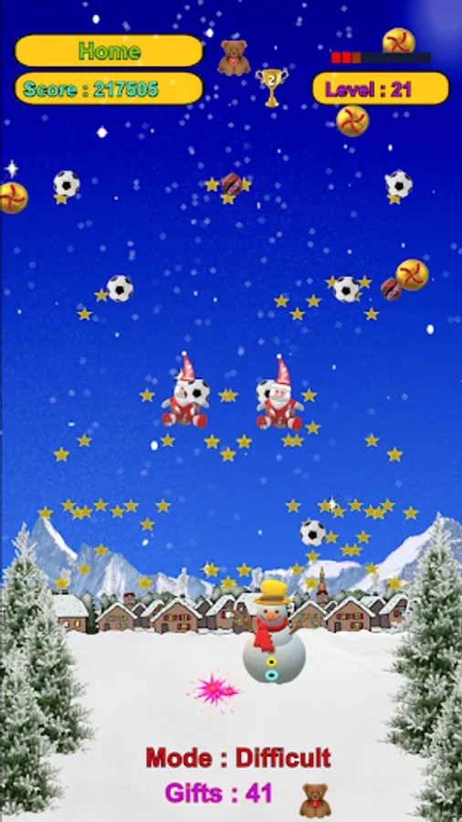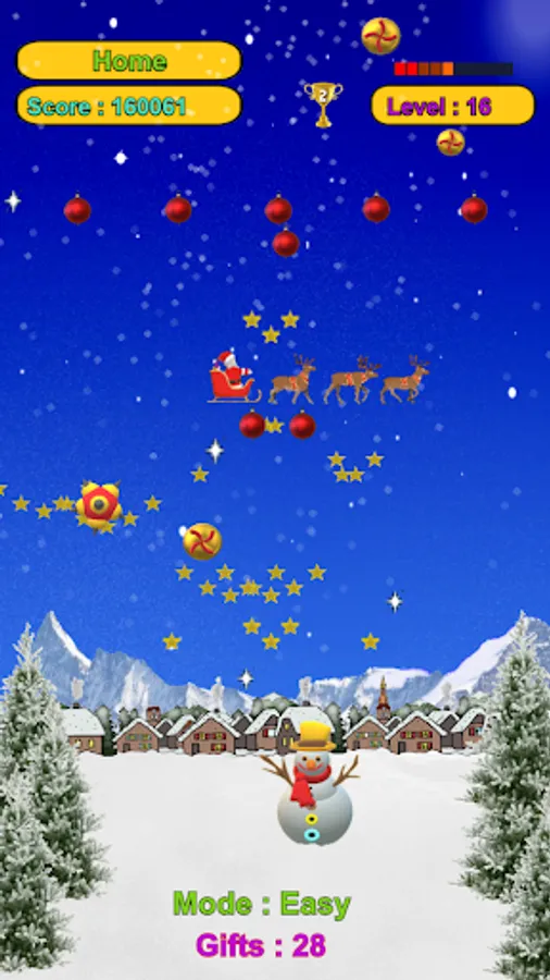 Get special gifts such as glittering Christmas stars, which increase your accuracy and shooting speed.