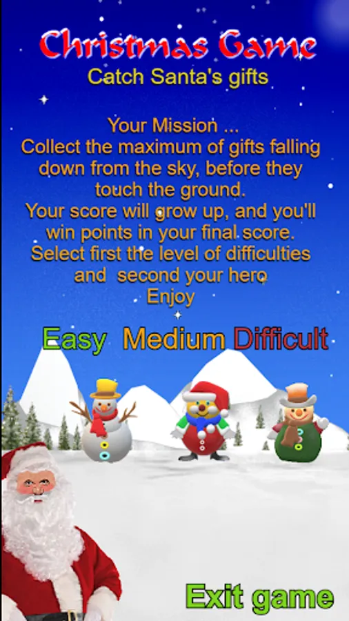 Christmas Game Catch Santa's Gifts, offers beautiful graphics and festive soundscape for total immersion in the Christmas spirit.