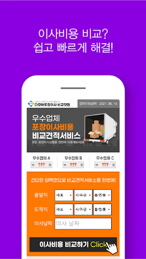 The moving center price comparison service combines only the advantages of price comparison and quotation service to provide company information to customers who want to move so that they can easily compare moving prices and services.
