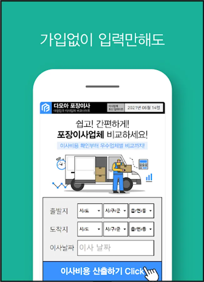 The moving center price comparison service combines only the advantages of price comparison and quotation service to provide company information to customers who want to move so that they can easily compare moving prices and services.