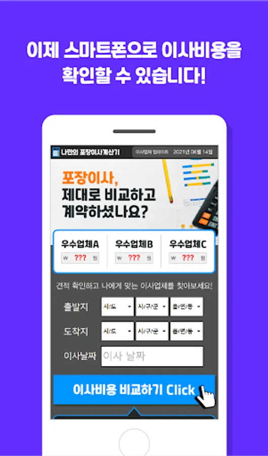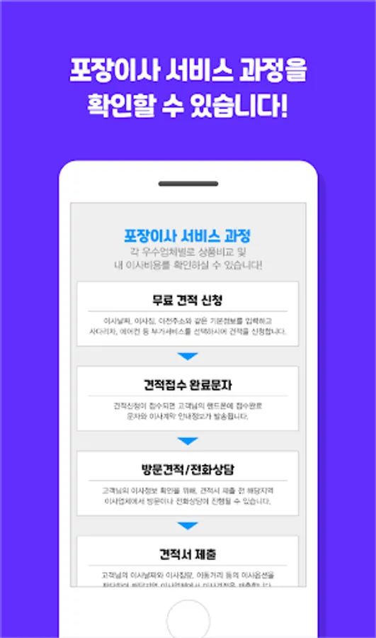 As long as there is a mobile device, it is an application that not only compares prices of packaging moving companies across the country, but also checks service quality anytime, anywhere.