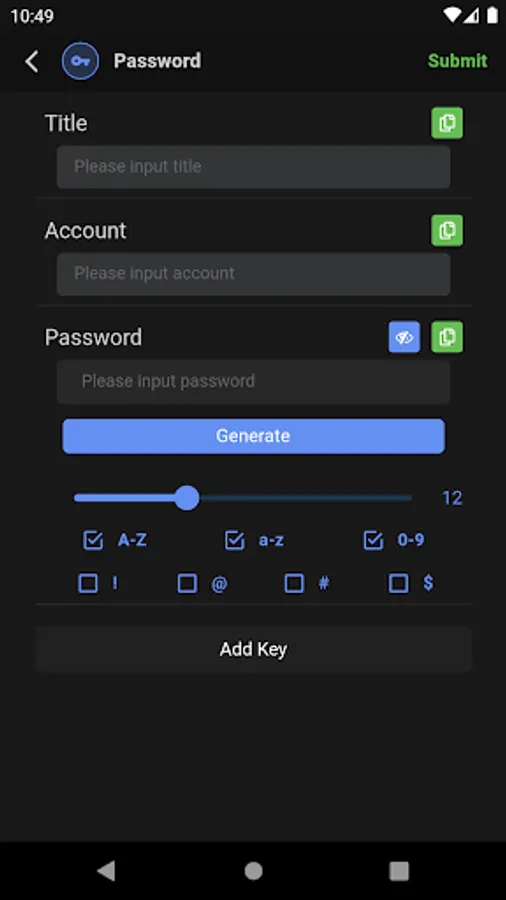 The APP is mainly used to help user to manage account and passwords. Users can quickly generate and query their own passwords through this app, thus effectively avoiding the risk of being hacked. At the same time, the APP also supports data synchronization between different terminals, allowing users to check the extremely fast password management.