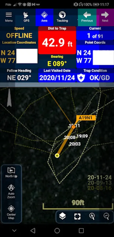 - Recording and displaying a tracklog of the area being searched so you don't search over the same track.