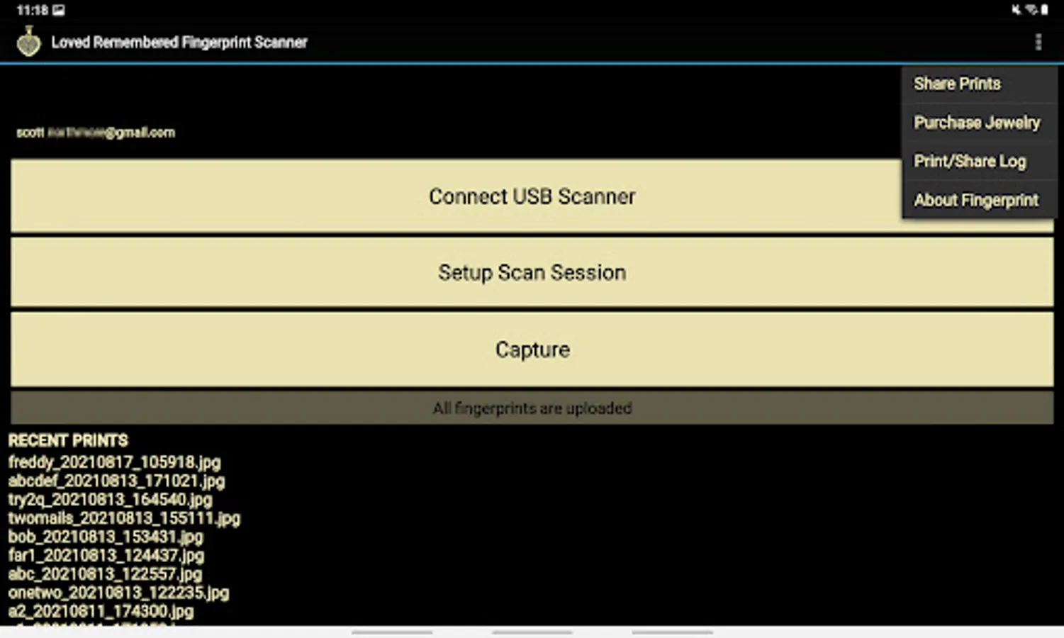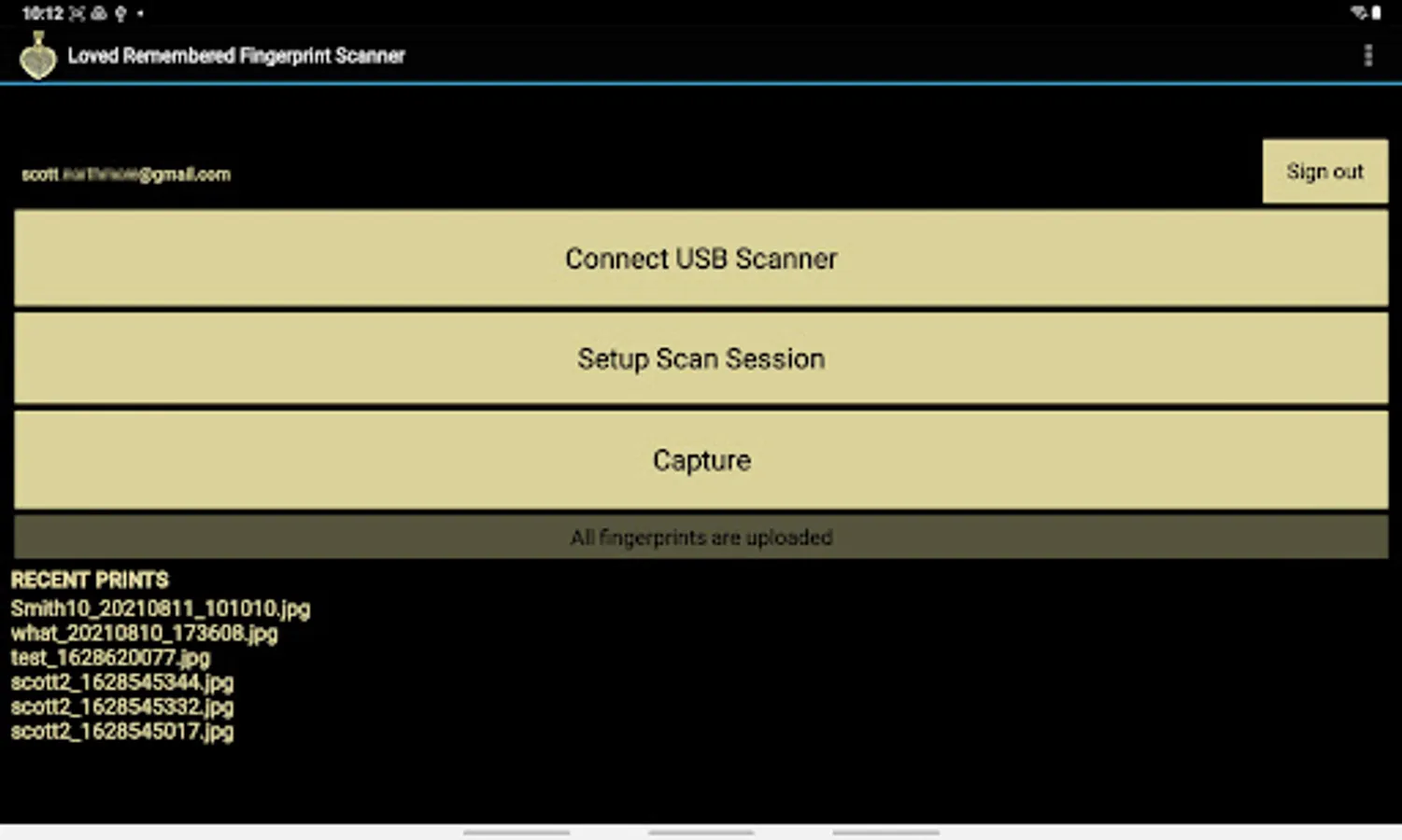 Funeral homes, crematoriums and any business or individual can easily scan and save fingerprints. This user friendly app scans fingerprints with an attached USB Fingerprint scanner and uploads them onto your Google Drive so you can share and access them at any time. Use these fingerprints when ordering personalized fingerprint jewelry and keepsakes from one of the providers, Loved Remembered, or Les Urnes Bégin.