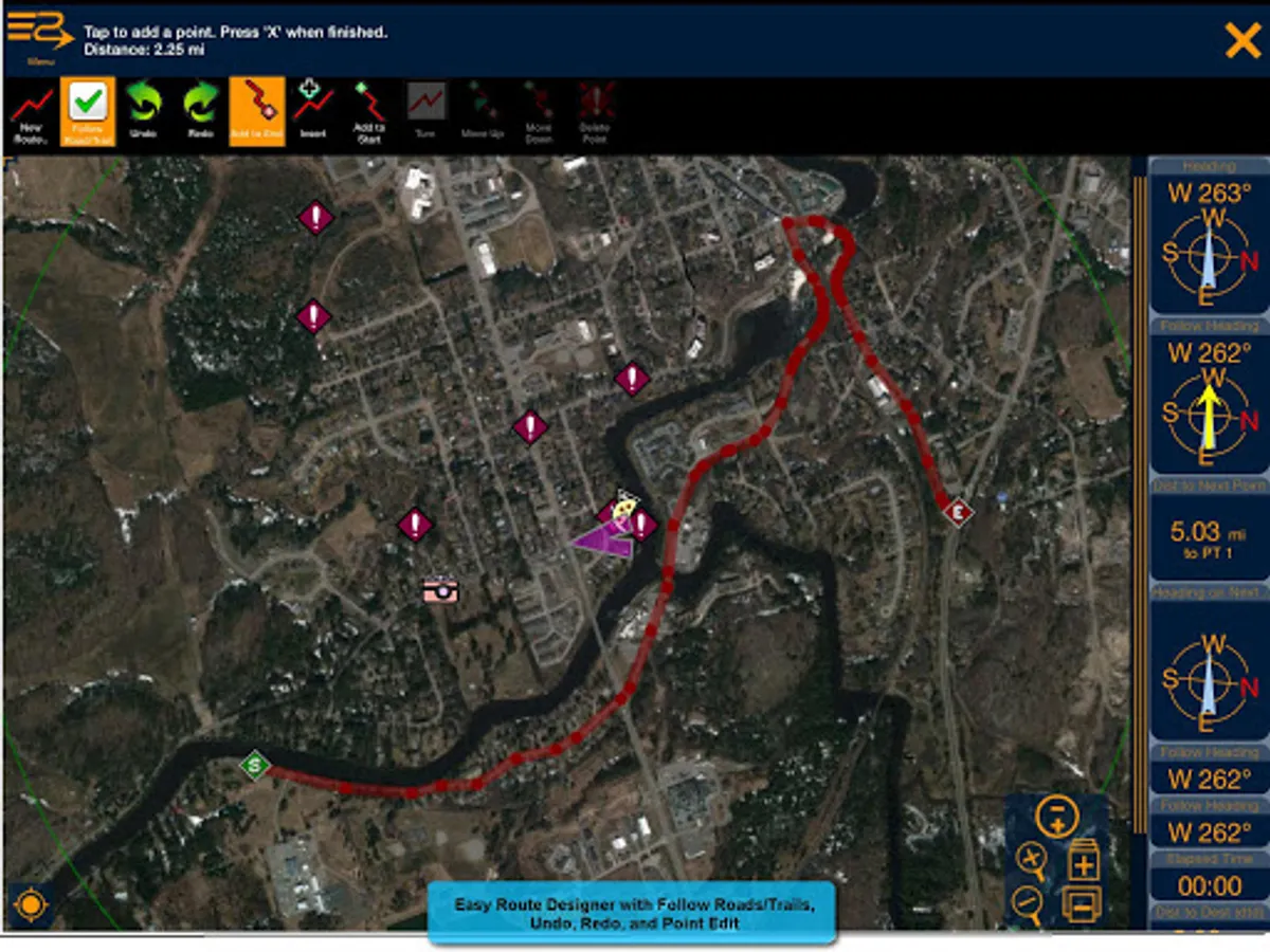 PathAway’s features have been carefully designed to embrace the widest range of activities in the field. PathAway Pro is designed to handle activities from navigating a tight waterway to traversing a mountain trail, to mapping property boundaries, to collecting wildlife data.