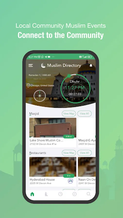 Muslim Directory App now features 400+ Duas for access anywhere includes Ruqya/Manzil dua's. Muslim Directory App is the most accurate and comprehensive online listing of Masjids, Halal Restaurants, Halal Grocery Stores, Halal Markets, Islamic Bookstores, Clothing, Tax Services, Doctors, Dentists, Travel Agencies (Hajj/Umrah) and many more Muslim Businesses. You can also get accurate prayer times anywhere in the US and Canada. Find your closest Masjids and halal restaurants with the click of a button.