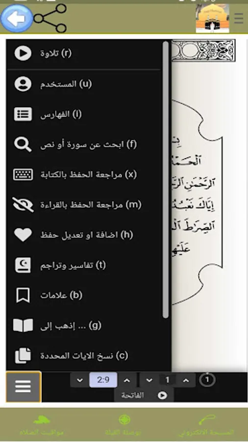1. Reading the Holy Quran: The user can read the Holy Quran with various well-known recitations and narrations, and the application also includes many auxiliary tools such as interpretation.
