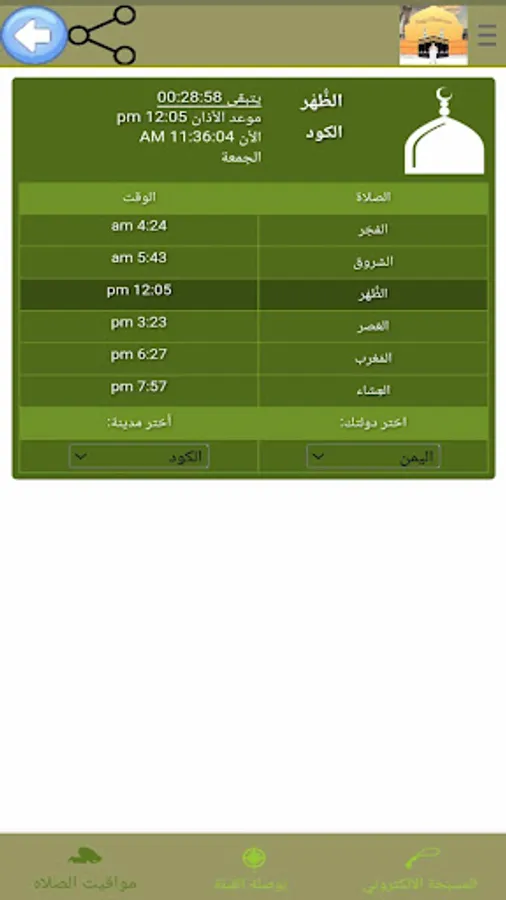 8. Prayer times: The application shows the exact prayer times for the place of use, and it can determine the direction towards the Qibla by means of a compass to help the user perform the prayer at the specified time and in the correct direction.