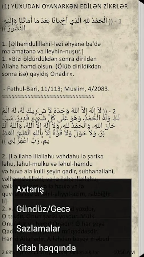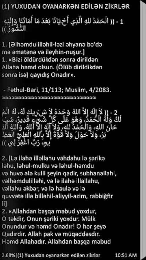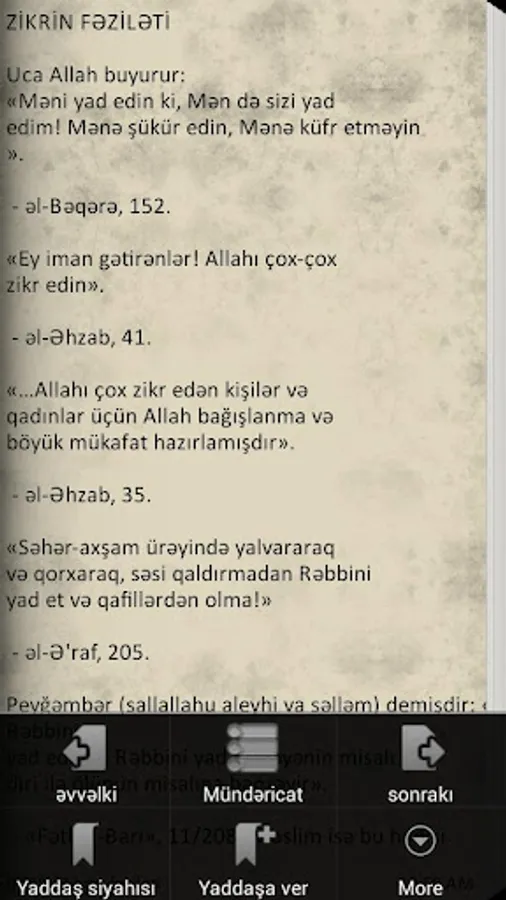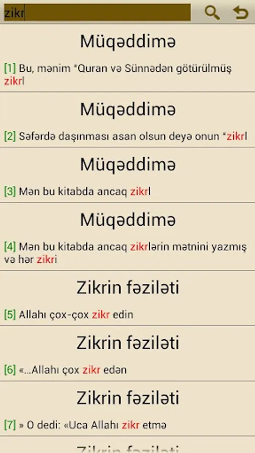 - Dua və zikrlərin mündəricat üzrə seçim imkanı