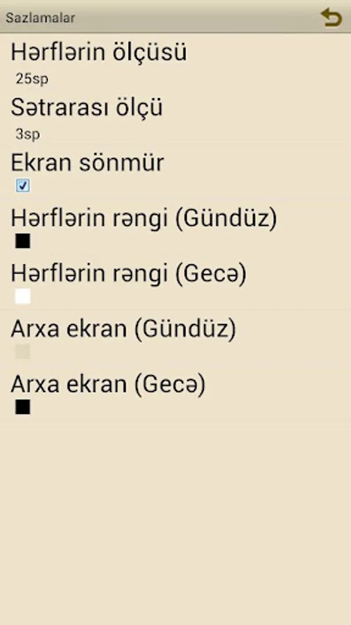 - Hərflərin və sətrarası ölçülərin verilməsi
