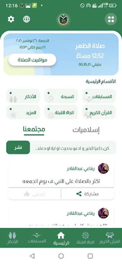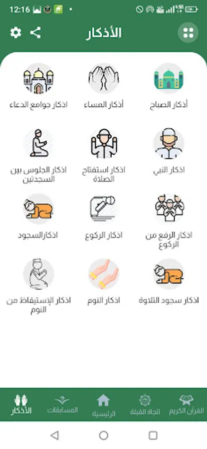 Features of the program: Prayer times, Quran, Qibla, Remembrances and Azan