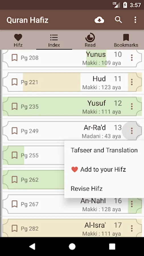 Quran Hafiz helps you read, search, understand and track your memorization of the Holy Quran.