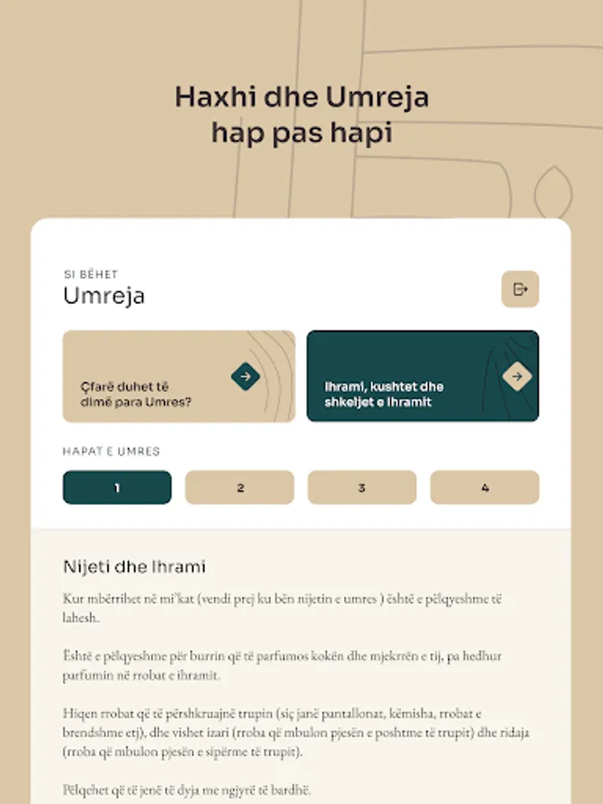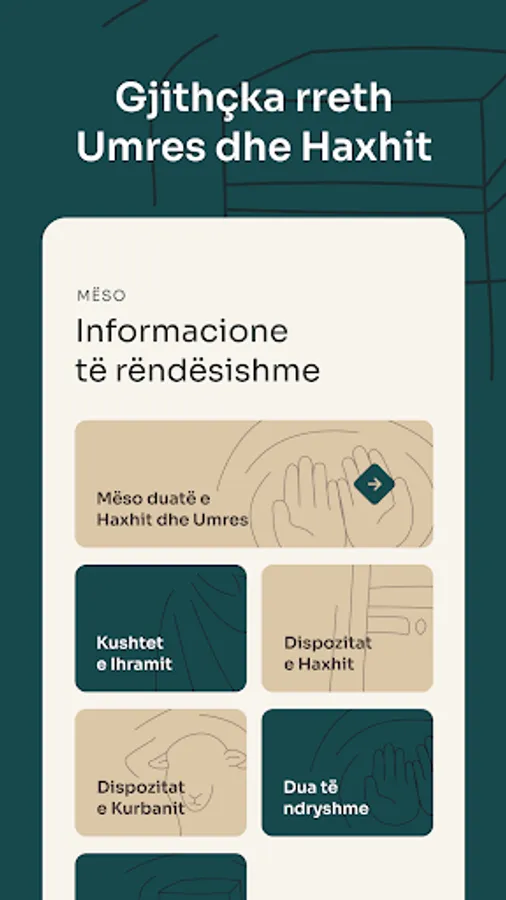 The application is designed to make it easy for you to learn the provisions of Hajj and Umrah, it also provides information about the rituals and holy places you need to perform Hajj and Umrah.