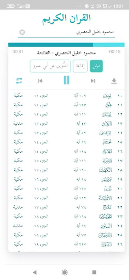 The Holy Quran audio - Quran mp3 provides everything you need to enjoy listening to the Holy Quran audio mp3 completely without searching everywhere for the reader you love, and it also contains an easy search system so that you can reach the reader you love in seconds.