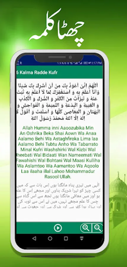 Six Kalmas of Islam is made for all the Muslims around the world. You can read 6 Kalmy from our app in Arabic with Urdu and English Translations. this app has audio in Arabic language too. You can learn 6 kalmas of Islam very easily with our app. 6 kalma in audio is designed specifically for the Muslims around the world who wan to learn and memorize 6 kalmas. You can read 6 kalms daily to memorize them.
