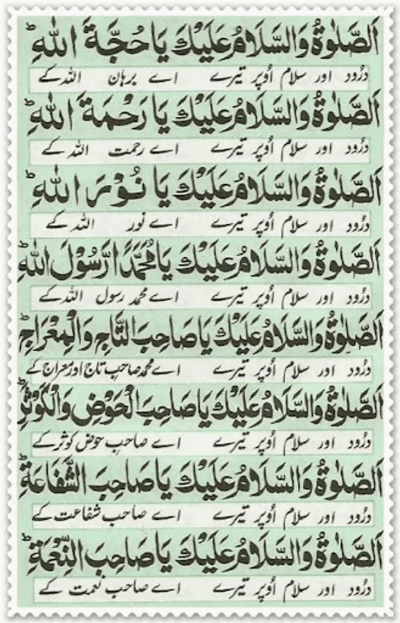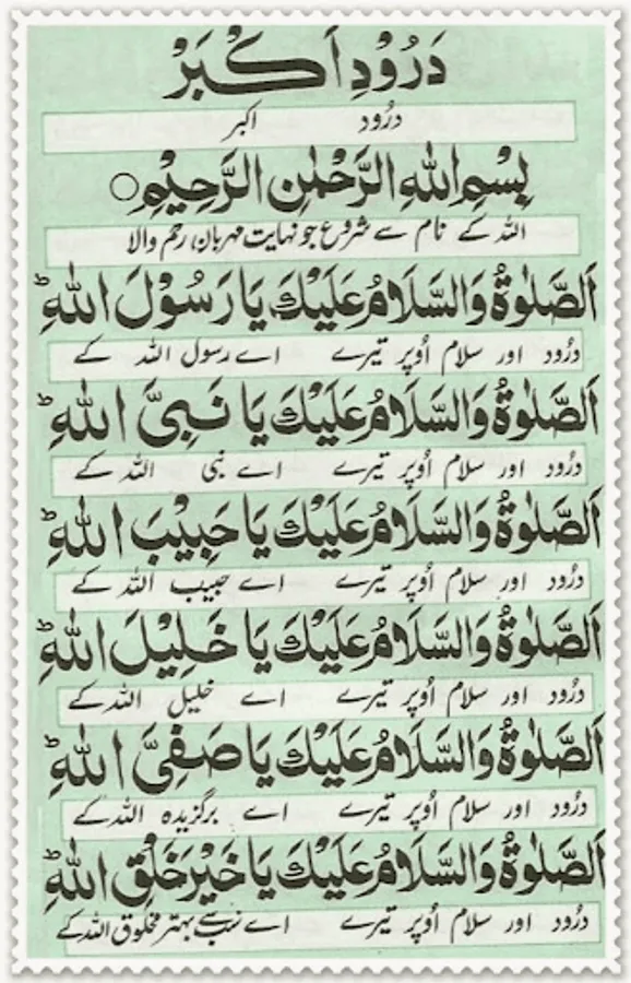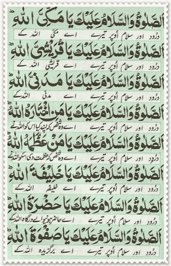 This Durood Shareef is in fact the explanation of the true heart feelings of Ashiqaan e Rasool (Sallal Laahu Ta'ala Alayhi Wa Aalihi Wa Sallam) so one who reads this Durood Shareef will be enriched with Sa'adat e Daarain.