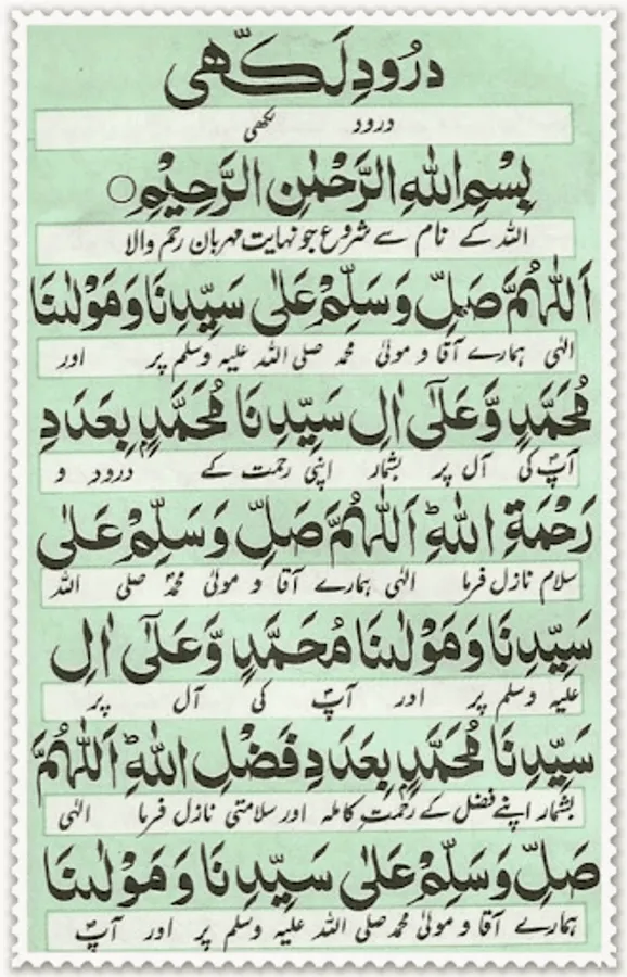 Hazrat Sultan Mahmood al Ghaznawi Rahmatullah alaih, used to recite as a wazeefah [ma'moolaat] with pure intentions and a lot of love this Darood one lakh times. Because of reading this long Darood one hundred thousand times, the whole day would go by and he wouldn't have much time for the administration of government. One night he saw Sayyidina Rasuli Akram Sall Allahu alaihi wa Aalihi wa Sallim, who informed Hazrat Sultan Mahmood Rahmatullah alaih that the Ummat was is need of his work and the administration of government is dependent on Hazrat Sultan Mahmood al Ghaznawi.