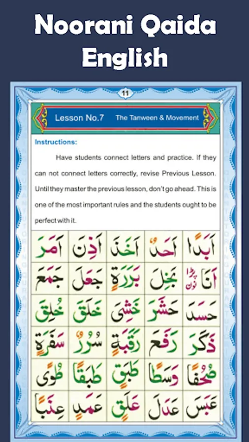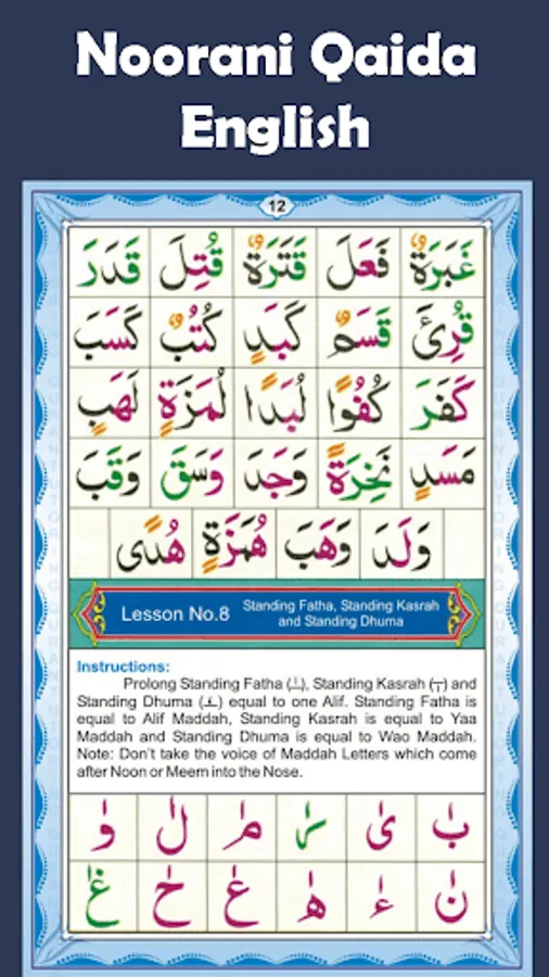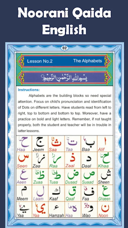 Noorani qaidah in English is free for all Android devices. Lesson wise and Word by Word Pronunciations.
