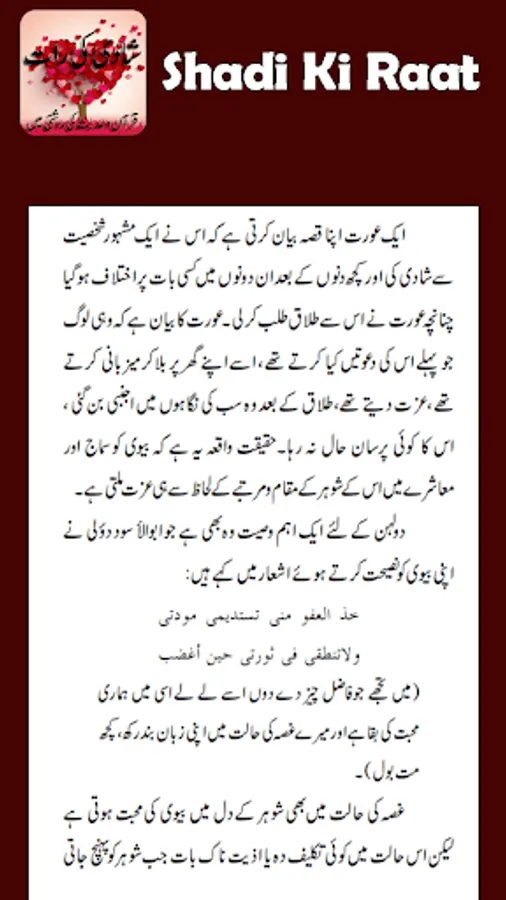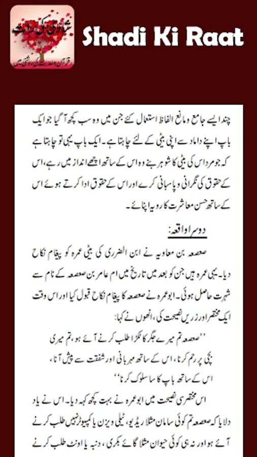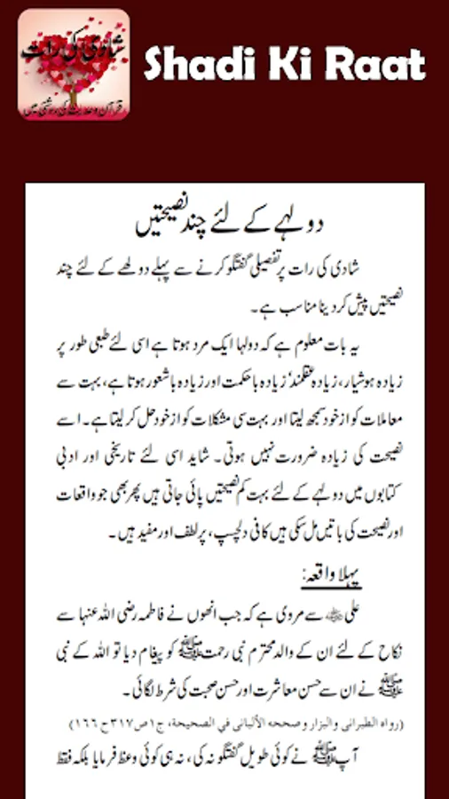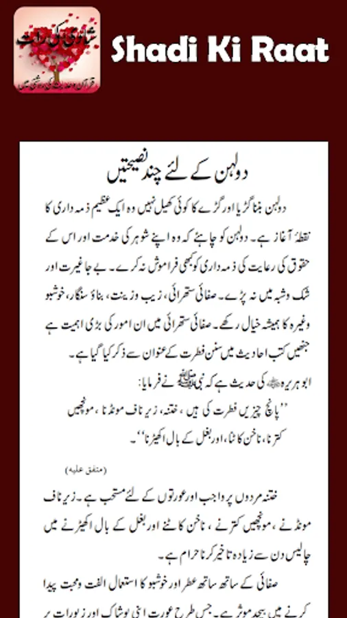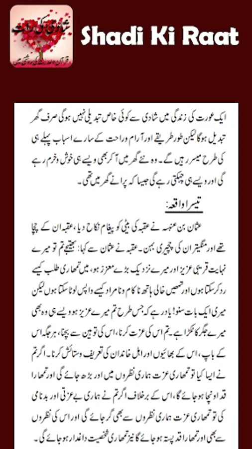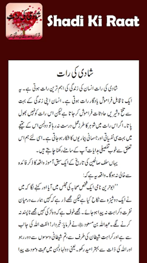 Shadi Ki Raat is an Islamic application about sex guide after marriage in Islam.