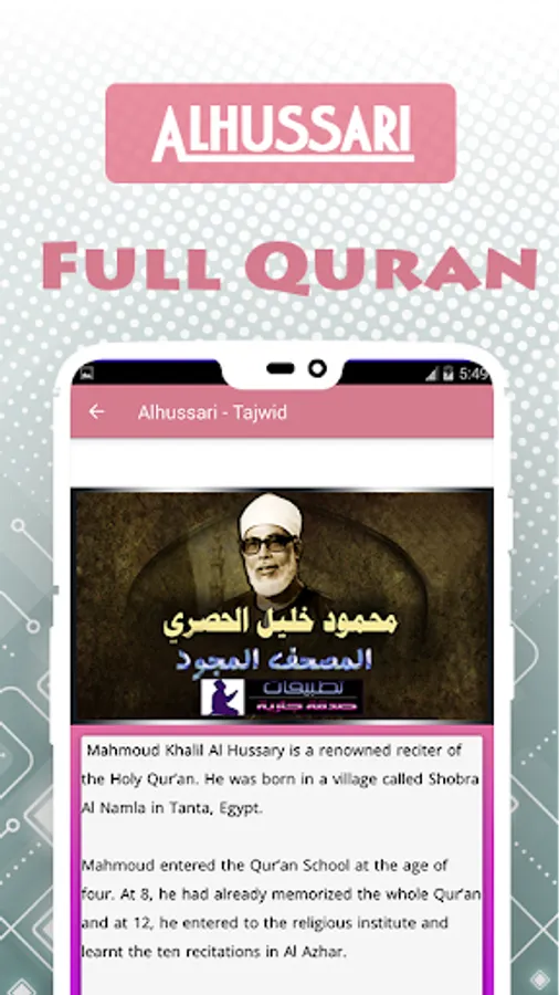 Mahmoud Khalil Al Hussary is a renowned reciter of the Holy Qur’an. He was born in a village called Shobra Al Namla in Tanta, Egypt.