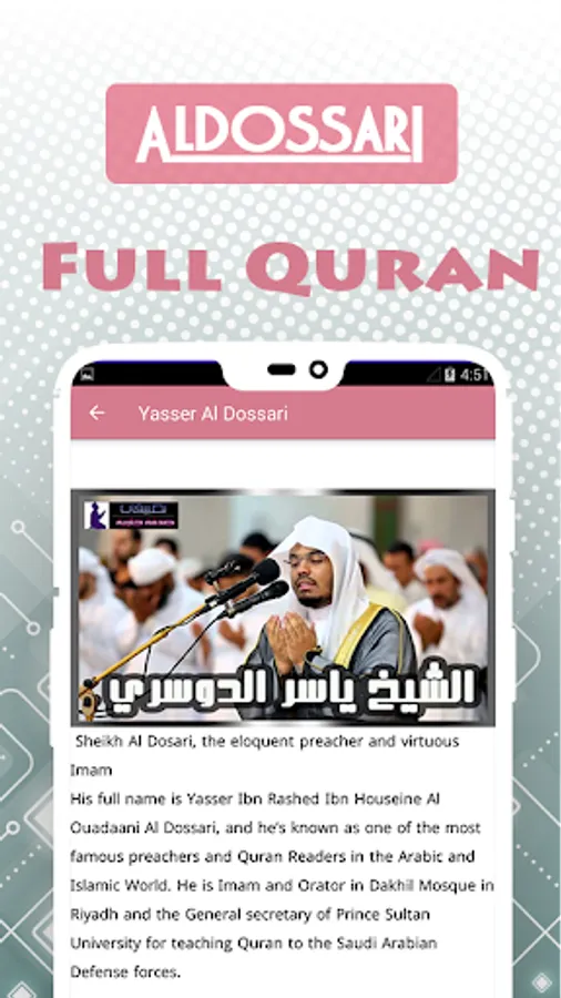 • This App contains the complete Holy Quran mp3 audio by the reciter Al Dossari