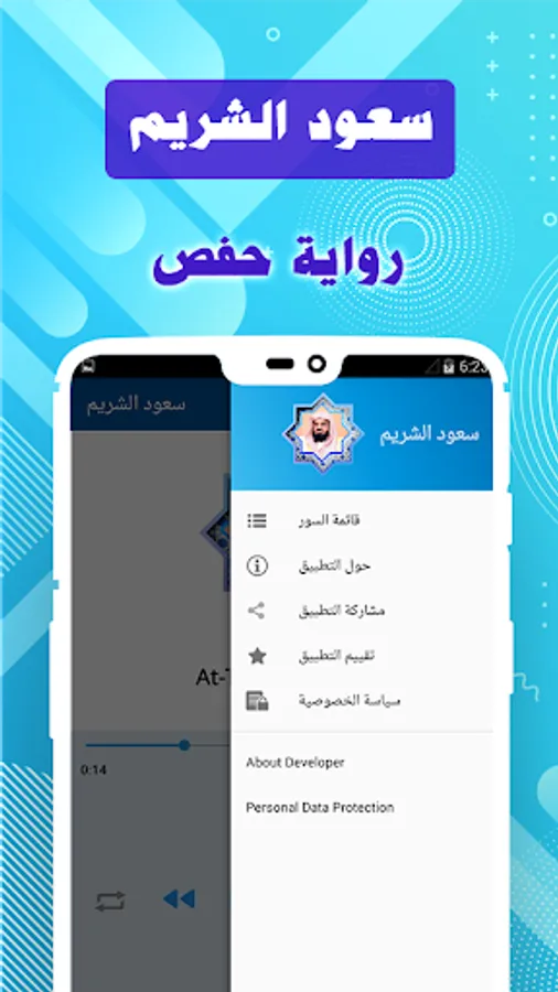 The application of Saoud Shuraim ( offline) without Internet contains full quran Hafs recitation