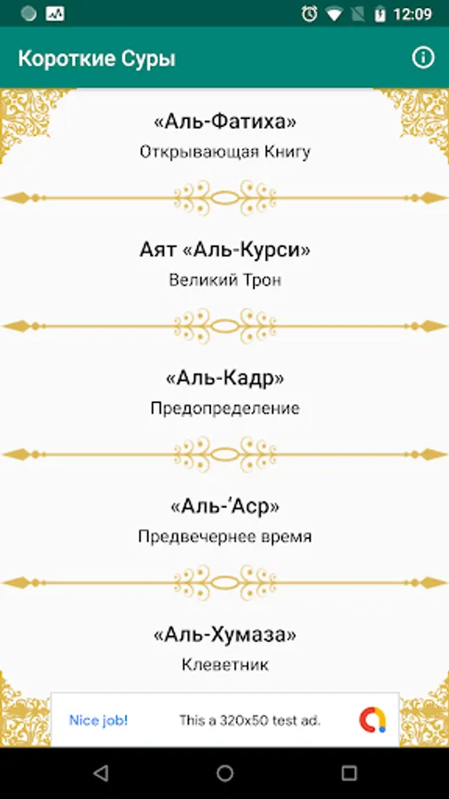 Short suras from the Holy Quran with transcriptions and translations of Emir Kuliev, read by Mishari Rashid.