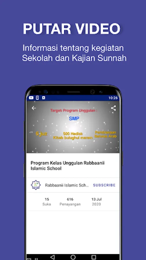 To become a national superior school in the field of character and academic achievement guided by the Qur'an and As-Sunnah according to the understanding of friends.