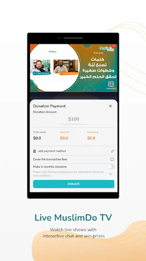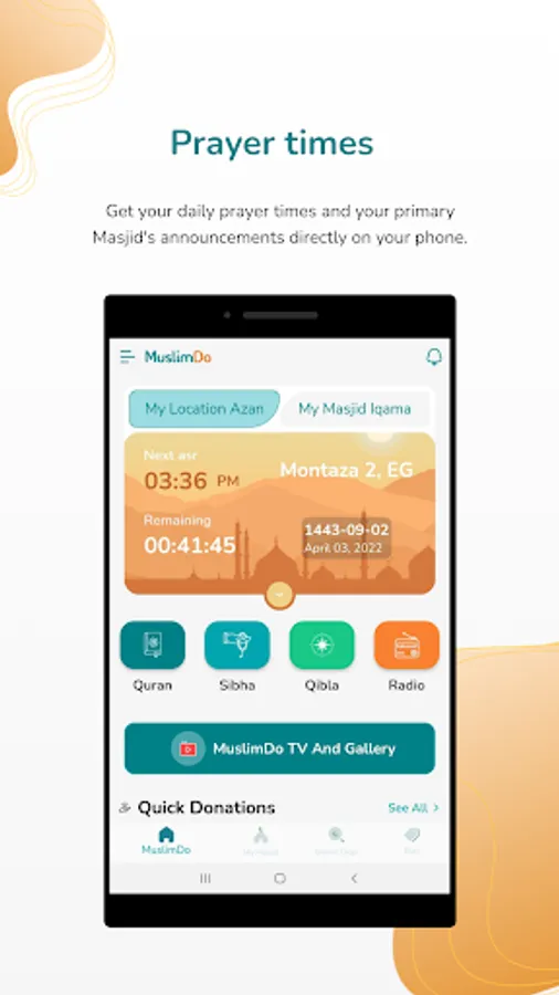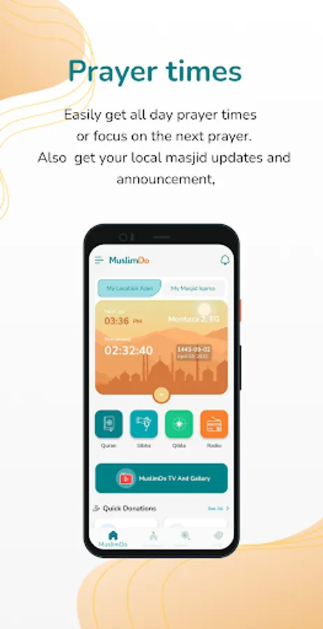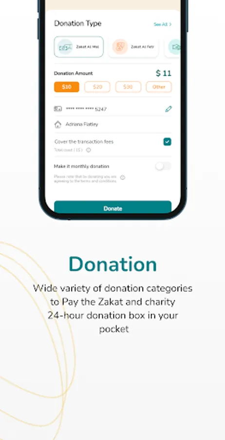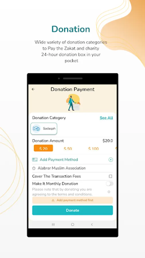- Offering different easy ways of donation for your favorite Organization or Masjid