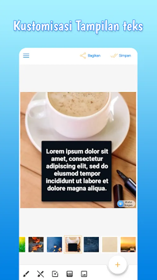 ✓Katabagus makes it easy for you to create captions on your smartphone in just a few steps. The position of the text that can be moved with the fingers and various text appearance settings will make your creations look professional.