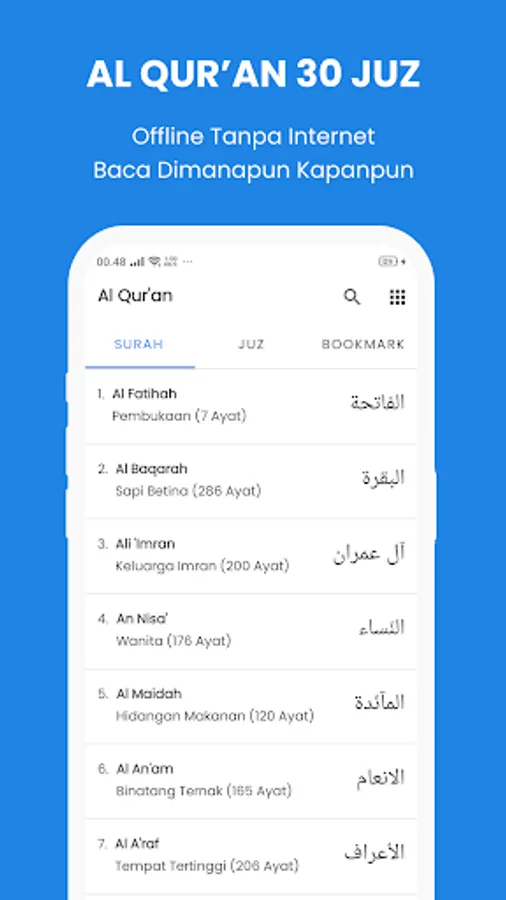 AlQuran 30 Juz without internet offline and Indonesian translation complete with reading Arabic, Latin and translations and the Koran mp3.
